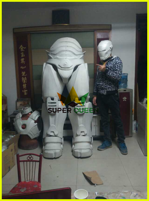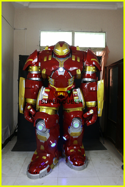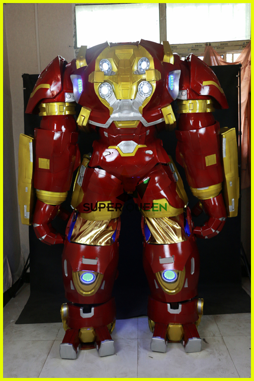 We usually use carton box or wooden box to pack the iron man costume.
